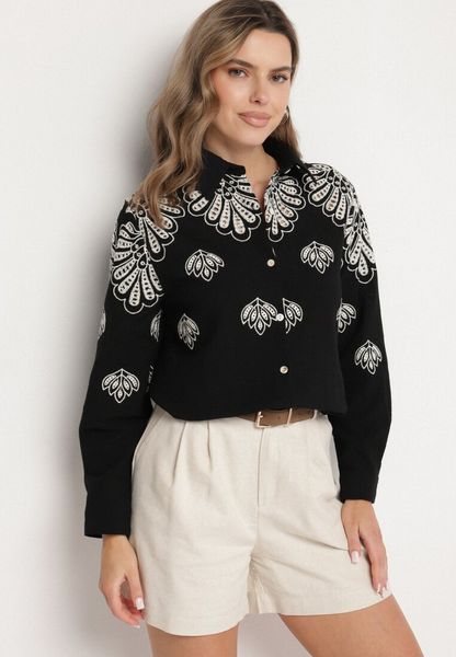 Czarna Bawełniana Koszula Zdobiona Ażurowym Haftem Nevriona