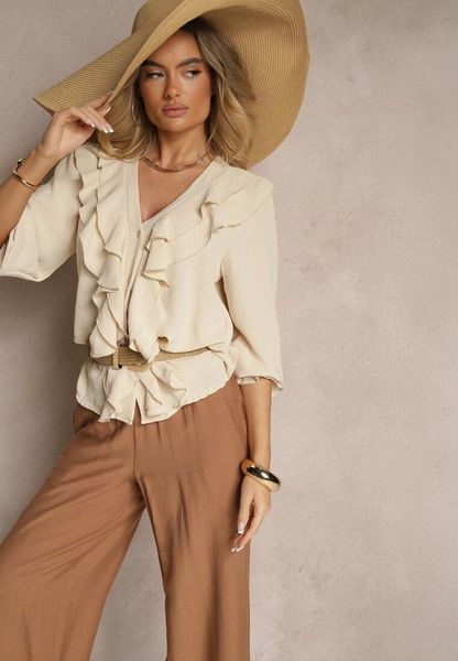 Jasnobeżowa Koszula z Falbankami Ravedia