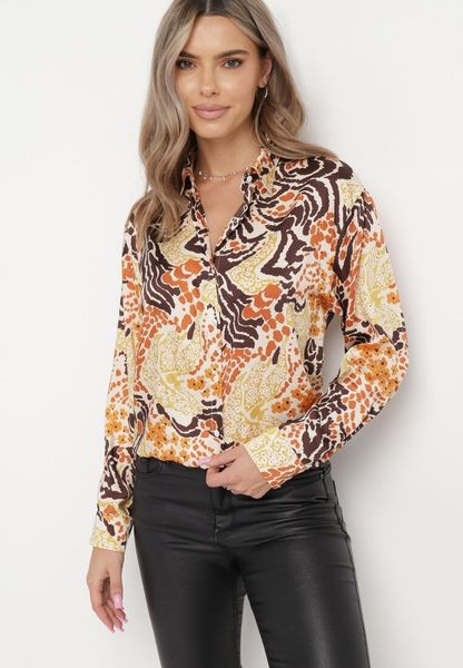 Brązowo-Żółta Koszula Ozdobiona Abstrakcyjnym Wzorem Budame