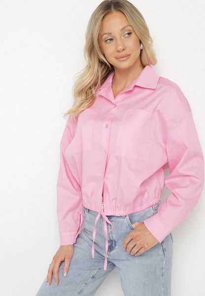 Różowa Bawełniana Koszula Ozdobiona Wiązaniem Zolmio