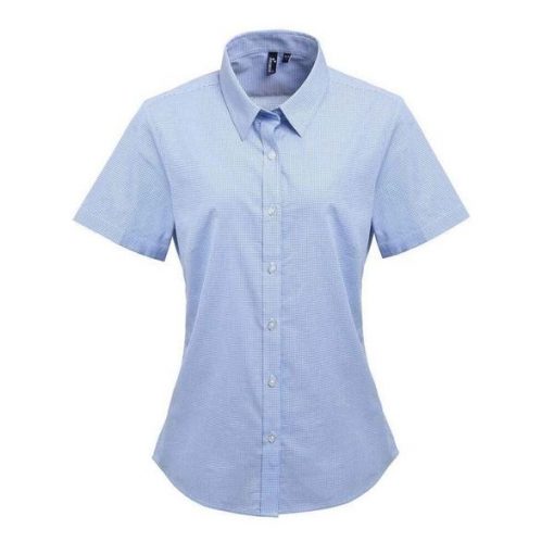 Damska Bawełniana Koszula Z Krótkim Rękawem W Kratkę Micro Gingham