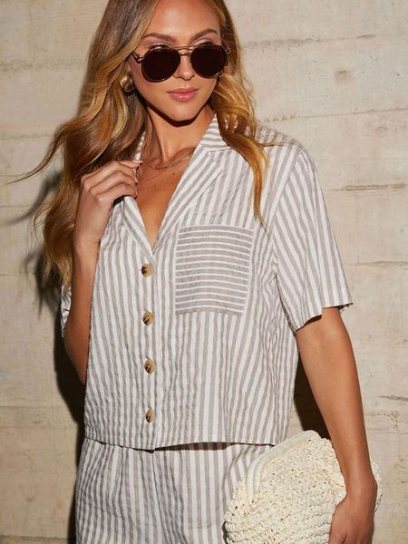 – czysta bawełna- kołnierzyk: z klapami- dekolt: V- zapięcie: listwa guzikowa- kieszenie: na piersi- krój: luźny- wzór: paskiUwaga: Przy wyborze właściwego wariantu zaleca się korzystanie z tabeli rozmiarów.