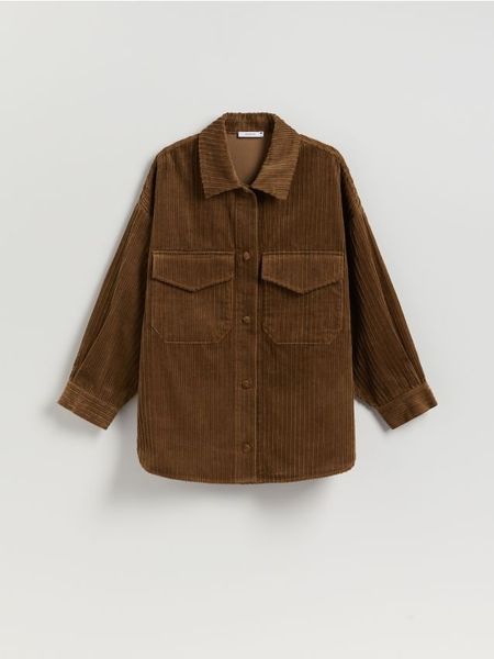 Koszula o prostym kroju, wykonana ze sztruksowej tkaniny.