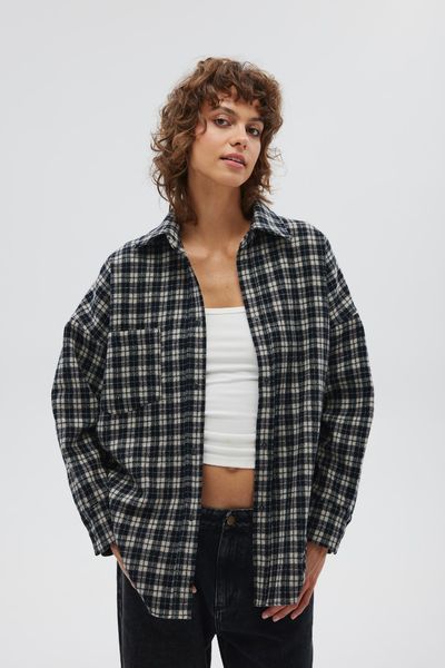 Wełniana koszula z HAFTEM, w kratę CZARNO KREMOWĄ – RENO -S/M