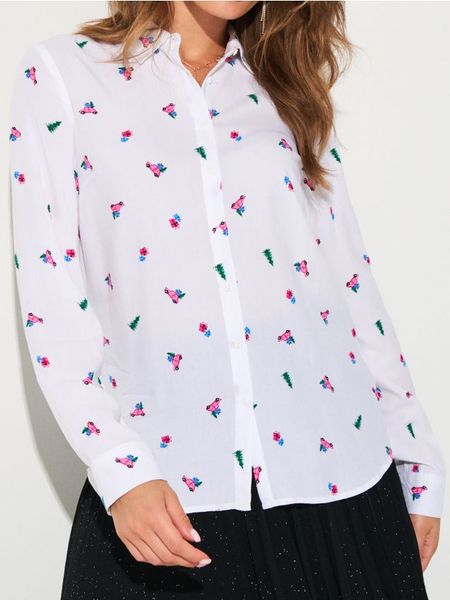 Sinsay – Świąteczna koszula z nadrukiem aut, prezentów i choinek – biały –