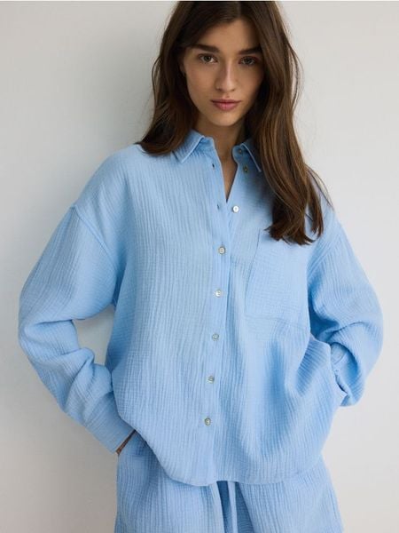 Koszula z bawełnianego muślinu – jasnoniebieski