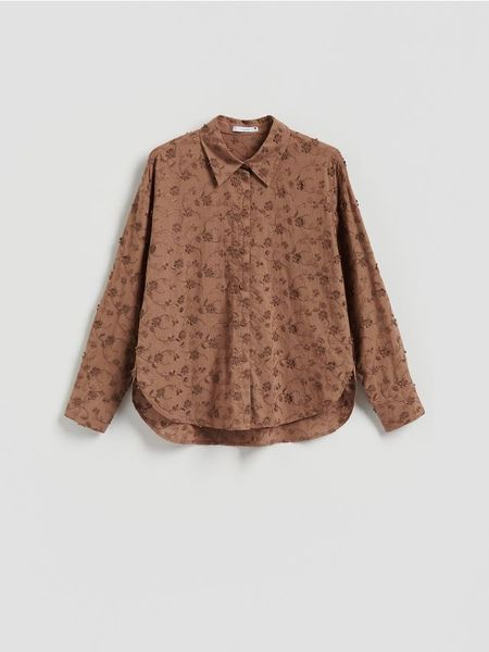 Bawełniana koszula z haftowaniem – brązowy