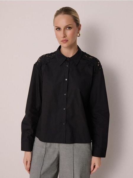 Sinsay – Bawełniana koszula z ozdobną koronką – czarny –