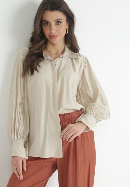 Jasnobeżowa Koszula z Plisowanymi Rękawami Pascala