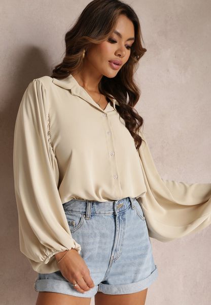 Jasnobeżowa Koszula z Bufiastymi Rękawami Zdobionymi Plisowaniem Marayati