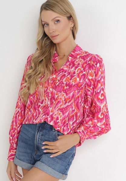 Różowa Koszula na Guziki w Fantazyjny Nadruk Deniall