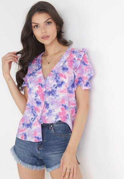 Fioletowa Koszula z Głębokim Dekoltem i Falbankami przy Ramionach Rohiro