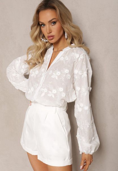 Biała Koszula Zapinana na Guziki z Haftowanej Tkaniny Glemma