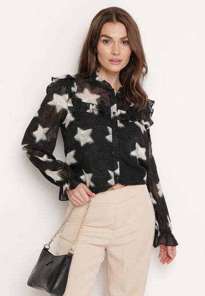 Czarna Koszula w Gwiazdki z Falbankami Klimixa
