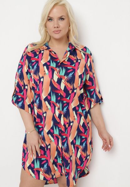 Granatowa Koszula o Dłuższym Kroju z Długim Rękawem Akirala