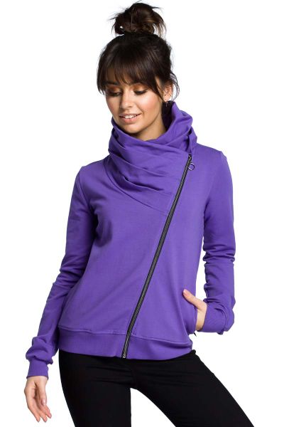 Sportowa Bluza Zapinana na Ukośny Zamek – Fioletowa