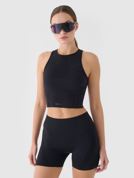 4F Crop top treningowy slim szybkoschnący damski – czarny XS/S
