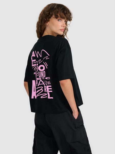 4F T-shirt oversize z nadrukiem damski – czarny L