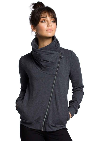 Sportowa Bluza Zapinana na Ukośny Zamek – Grafitowa