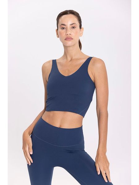 Granatowy Sportowy Biustonosz z Usztywnieniem i Podwójnymi Ramiączkami Ehuntia
