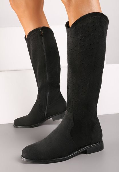 Czarne Płaskie Kozaki z Ażurową Cholewką Rivessa