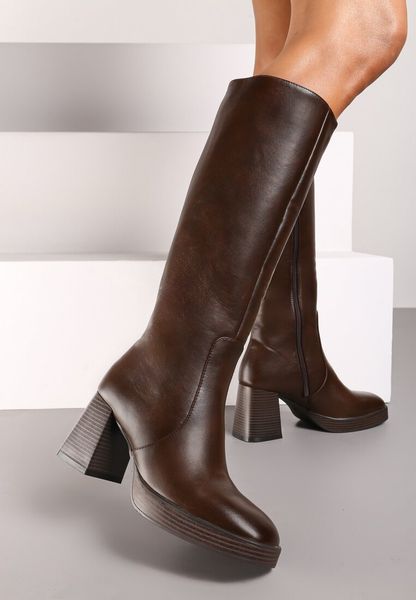 Ciemnobrązowe Kozaki na Słupku z Lekkim Ociepleniem Ansilaria