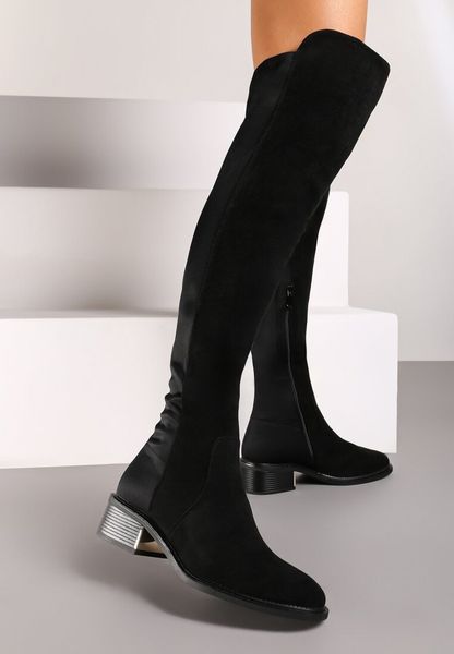 Czarne Klasyczne Kozaki Muszkieterki na Obcasie Clesse