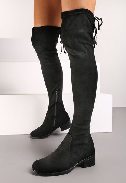 Czarne Płaskie Kozaki w Stylu Muszkieterek Ściągane Troczkiem Avasira