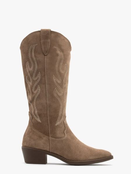 Beżowe kozaki typu kowbojki z haftem z linii RKO.Model wykonany ze skóry welurowej.Podszewka wykonana ze skóry i tkaniny, a wyściółka skórzana.Model nieocieplony.Podeszwa o grubości 4,5 cm.Nosek w szpic.Zamek do połowy łydki.Dystrybutor: Brawo Sp. z o.o. ul. Dworcowa 19, 34-130 Kalwaria Zebrzydowska; sklep@rylko.comKraj pochodzenia: POLSKA