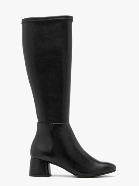 Czarne kozaki z elastyczną szeroką cholewką na niskim obcasie