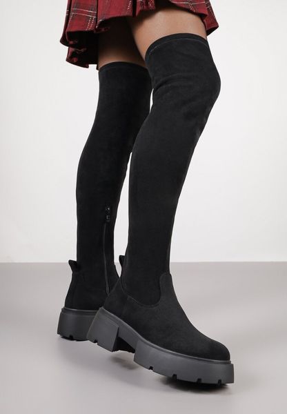 Czarne Kozaki na Grubej Podeszwie z Wysoką Dopasowaną Cholewką Sillie