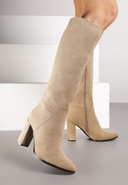 Ciemnobeżowe Kozaki na Słupku Hrarpi