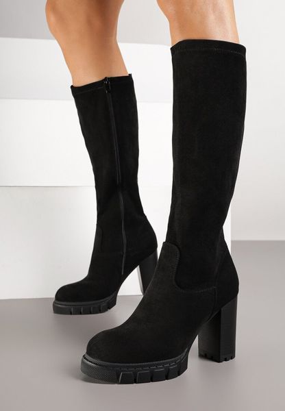 Czarne Kozaki z Imitacji Zamszu na Obcasie Typu Słupek Rilaresa