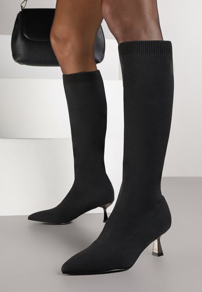 Czarne Kozaki Vices na Kaczuszce Ozdobione Skarpetową Cholewką Asonelle