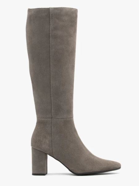 Szare kozaki na słupku ze skóry welurowej