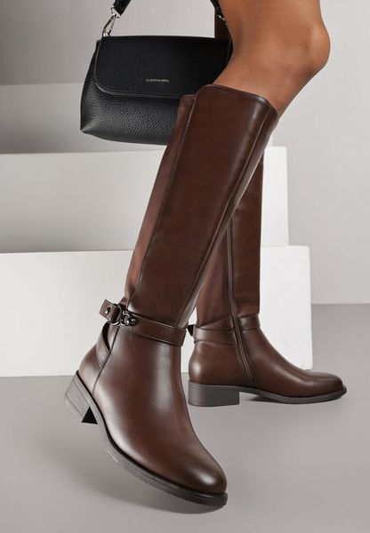 Brązowe Kozaki w Stylu Oficerek Ozdobione Klamrami Otima