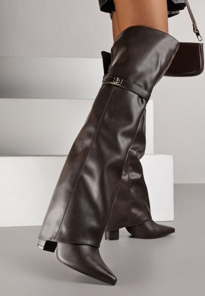 Brązowe Eleganckie Kozaki za Kolano z Cholewką Imitującą Nogawkę Zenesseria