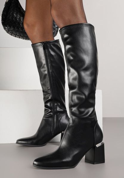Czarne Eleganckie Kozaki VICES na Słupku Zdobionym Metaliczną Wstawką Ranitta