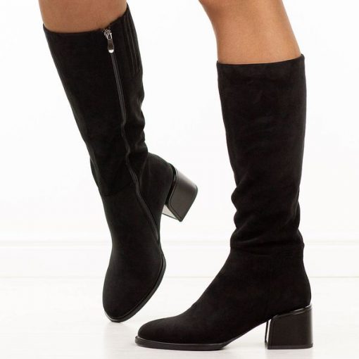 Czarne zamszowe kozaki damskie na obcasie Filippo Dkz6603/25