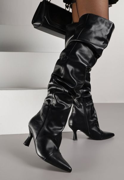 Czarne Kozaki Typu Slouchy na Szpilce Wiolina