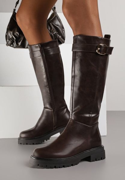 Brązowe Kozaki Ozdobione Metaliczną Klamrą Unildea