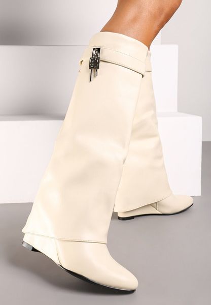 Beżowe Kozaki z Cholewką Imitującą Nogawkę i Koturnem Ericelle