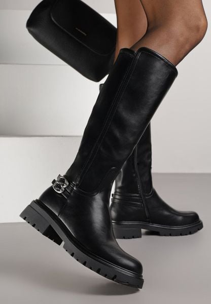 kozaki bez zapięcia kozaki na średnim obcasie obuwie damskie born2be kozaki ze sklepu born2be.pl czarne kozaki kozaki bez obcasa kozaki na klamry kozaki na płaskiej podeszwie kozaki born2be obuwie damskie born2be.pl