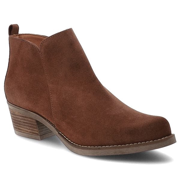 Botki damskie Hee, kowbojki zamszowe na klocku i zapinane na suwak, brązowe, 25773
