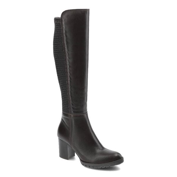 Kozaki damskie Grace, wysoka smukła cholewka ze skóry licowej z elastycznym ściągaczem i wysokim stabilnym obcasem, brązowe, 05110-2-231-T-93-3