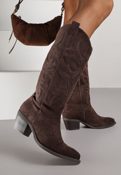 Brązowe Kozaki Typu Kowbojki w Klasycznym Stylu z Imitacji Zamszu Rilamira