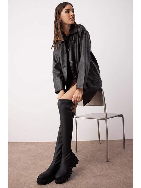 czarne kozaki kozaki trendyol obuwie damskie limango.pl kozaki ze sklepu limango.pl obuwie damskie trendyol kozaki bez obcasa kozaki bez zapięcia kozaki na średnim obcasie