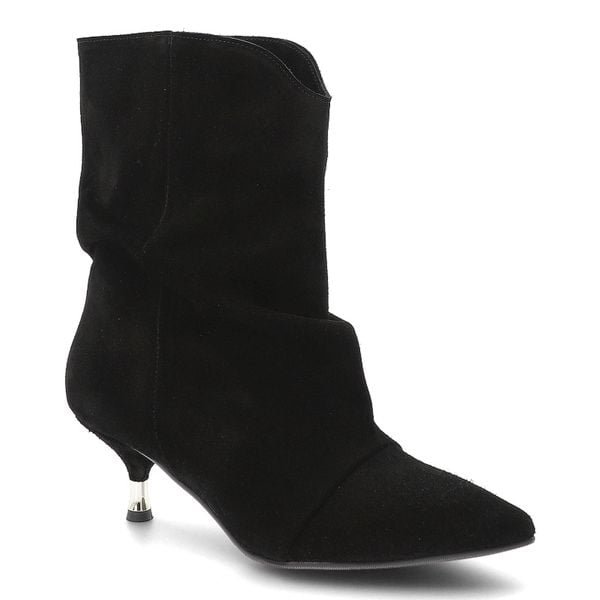 Botki damskie Chebello, na szpilce skórzane eleganckie z marszczoną cholewką wsuwane, czarne welur, 4814-034