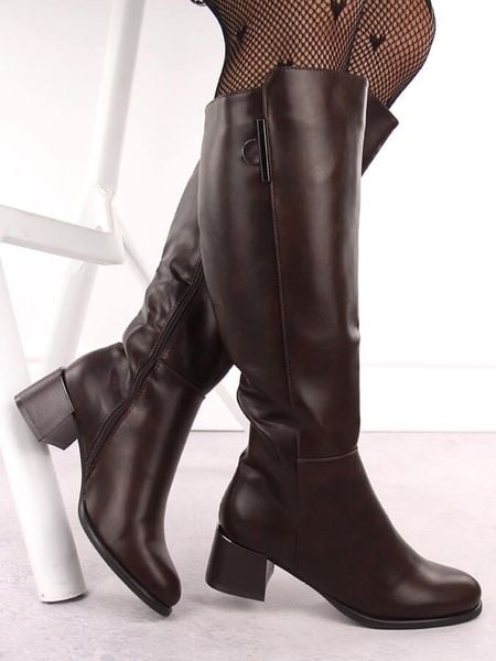 Kozaki damskie na obcasie ocieplane brązowe Jezzi MR2481-3