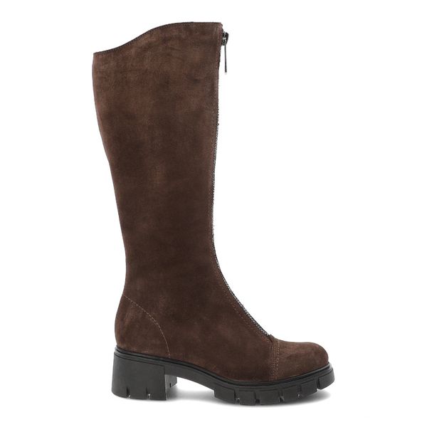 Kozaki damskie Simen, zamszowe z podeszwą z tworzywa i na stabilnym klocku, brązowe, 4259A-W